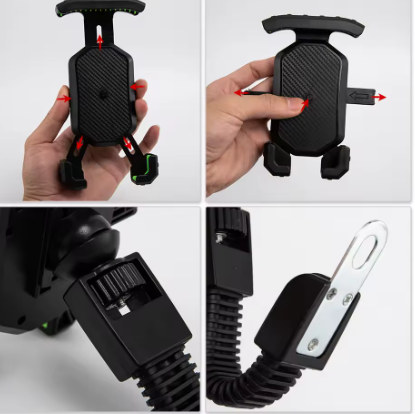 El soporte cuenta con una abrazadera ajustable que se fija fácilmente al manillar de tu bicicleta o moto, manteniendo tu teléfono seguro y estable mientras te desplazas. Además, la abrazadera está hecha de materiales resistentes que garantizan una sujeción segura para tu teléfono incluso en terrenos irregulares.